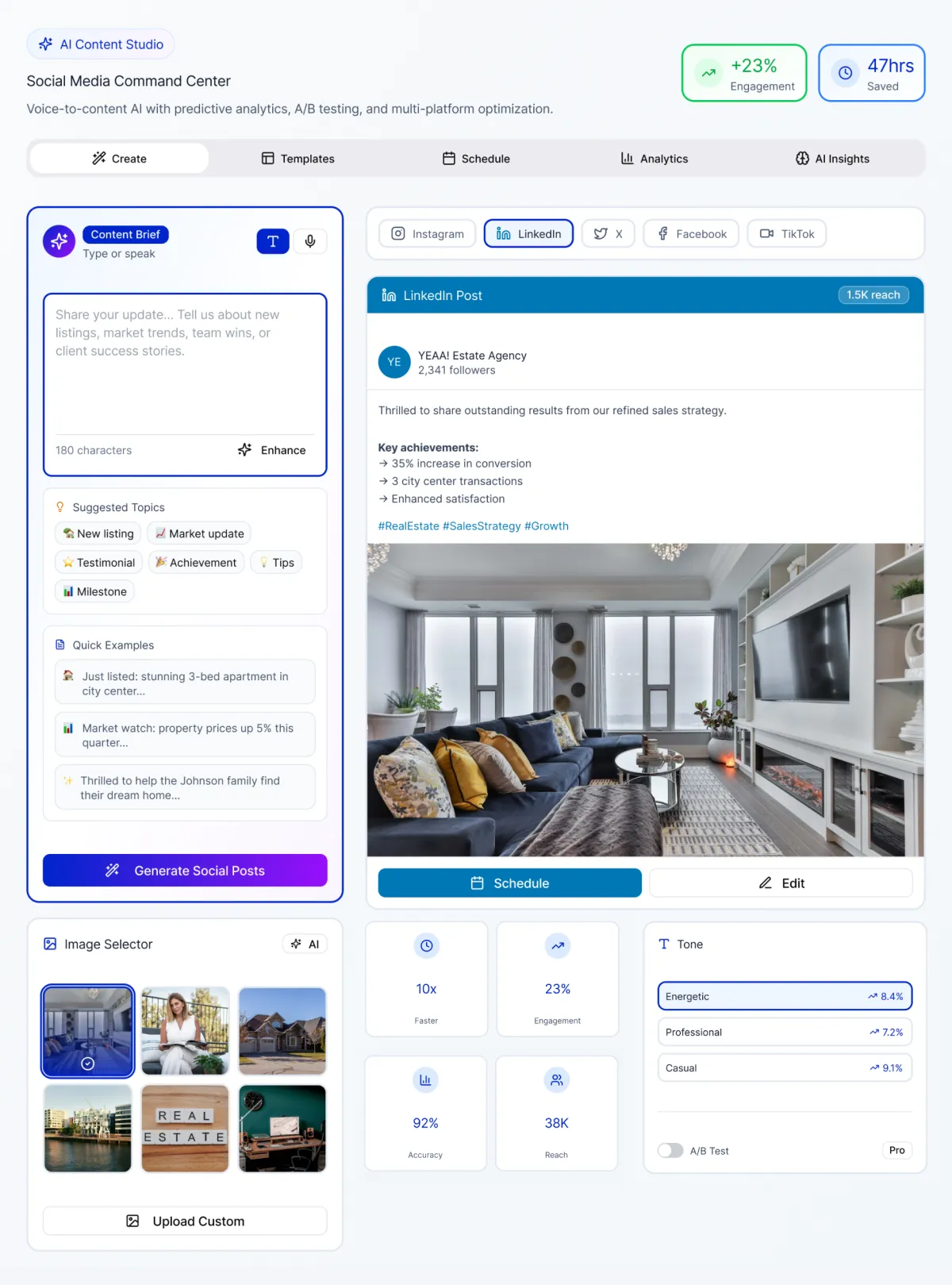 Week 1: enthusiastic posting. Week 4: sporadic. Week 8: forgotten. You're invisible online while competitors maintain consistent presence and you just don't have the time.